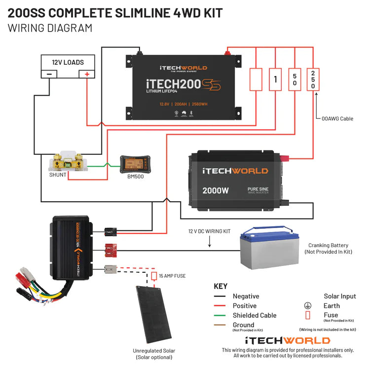 iTechworld Complete Slimline 4WD Kit 200Ah