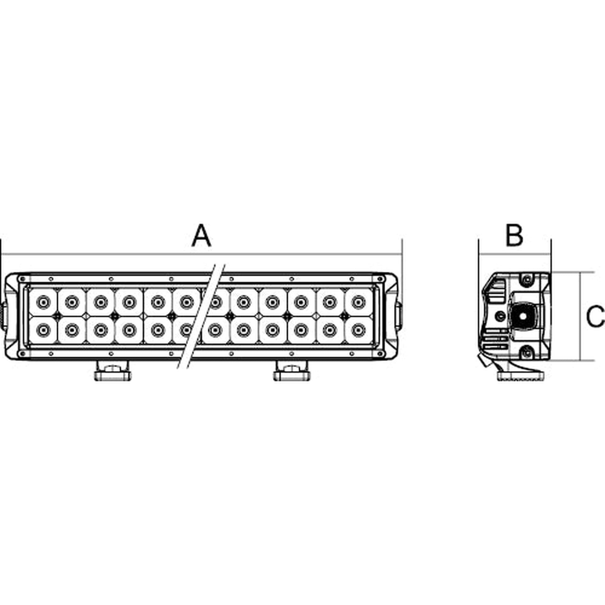 - DC2 Series dual row LED bar lamps produce up to 25920lm of instant light output