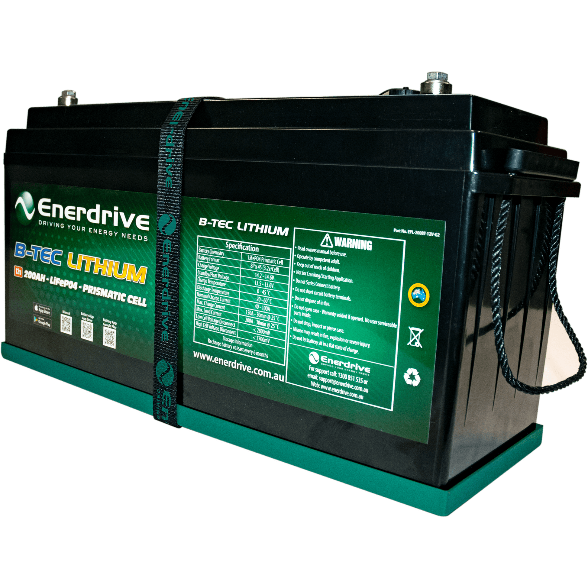 Enerdrive ePOWER B-TEC 200Ah Lithium Battery, 5 Year Warranty. The New Enerdrive Generation 2 (G2) B-TEC 200Ah Lithium Battery now comes with a 5 Year full replacement warranty. Enerdrive have released the new ePOWER B-TEC 200Ah Lithium Battery with new features including: