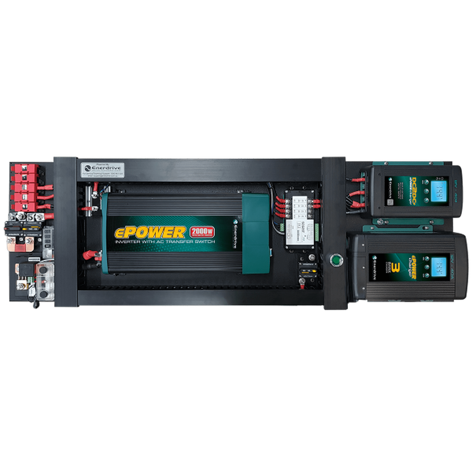 Enerdrive have created many different layouts and dimensional sizes to fit nearly every possible application. From small kits with AC & DC charging and battery monitoring up to kits with 2000w inverters and individual charge/load monitoring.