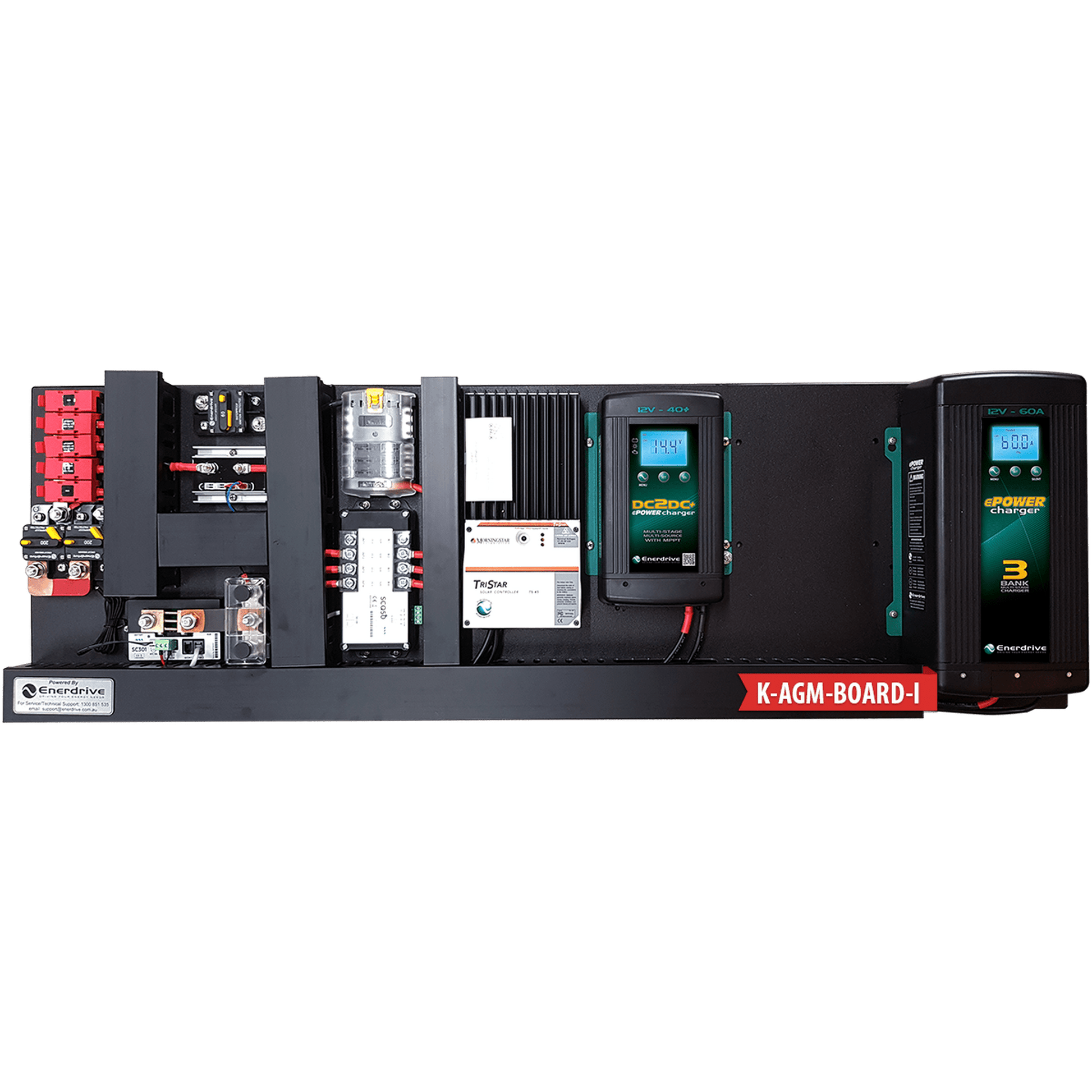 Enerdrive have created many different layouts and dimensional sizes to fit nearly every possible application. From small kits with AC & DC charging and battery monitoring up to kits with 2000w inverters and individual charge/load monitoring.