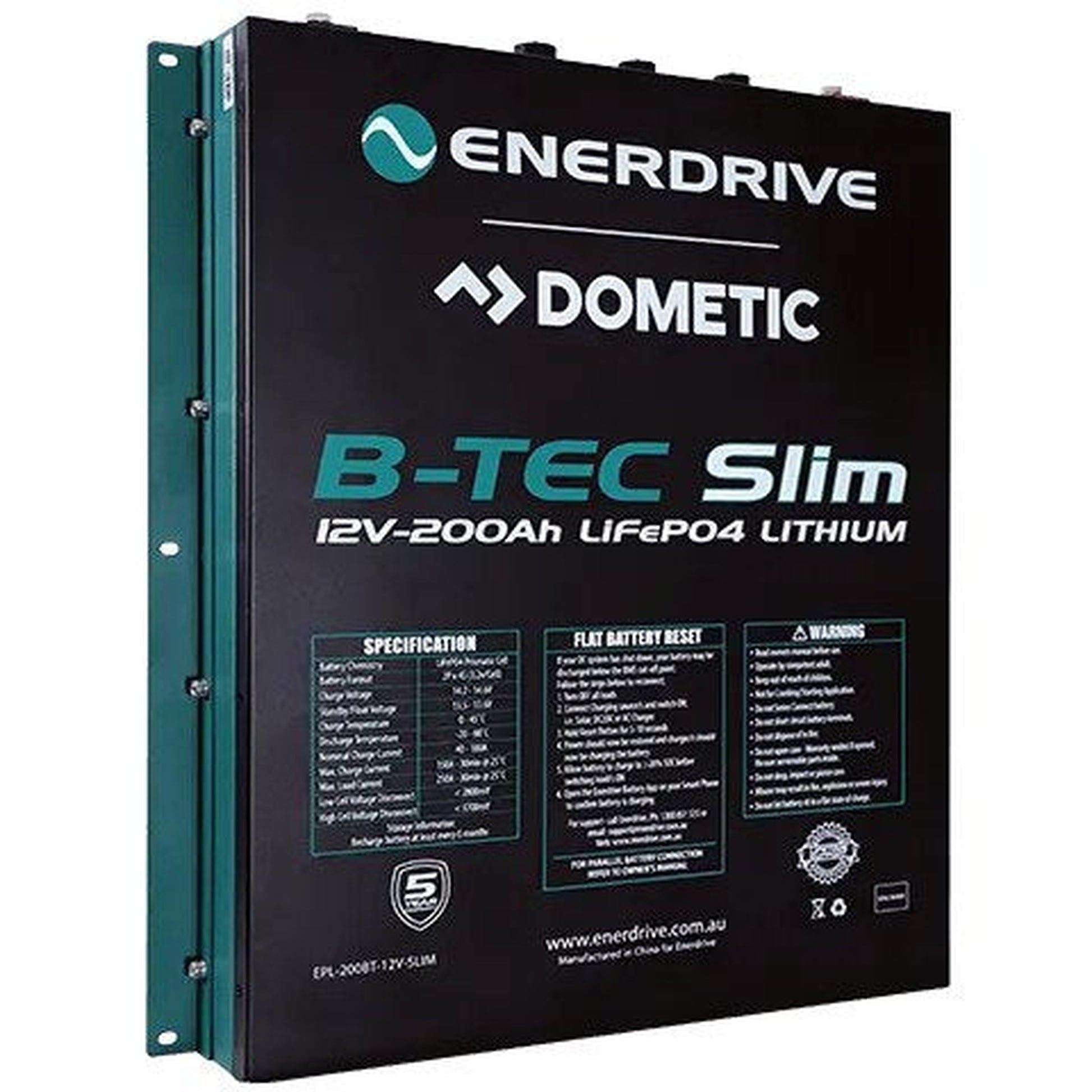 - 1 x Enerdrive B-TEC 200Ah Slim Metal Case Lithium Battery, EPL-200BT-12V-SLIM