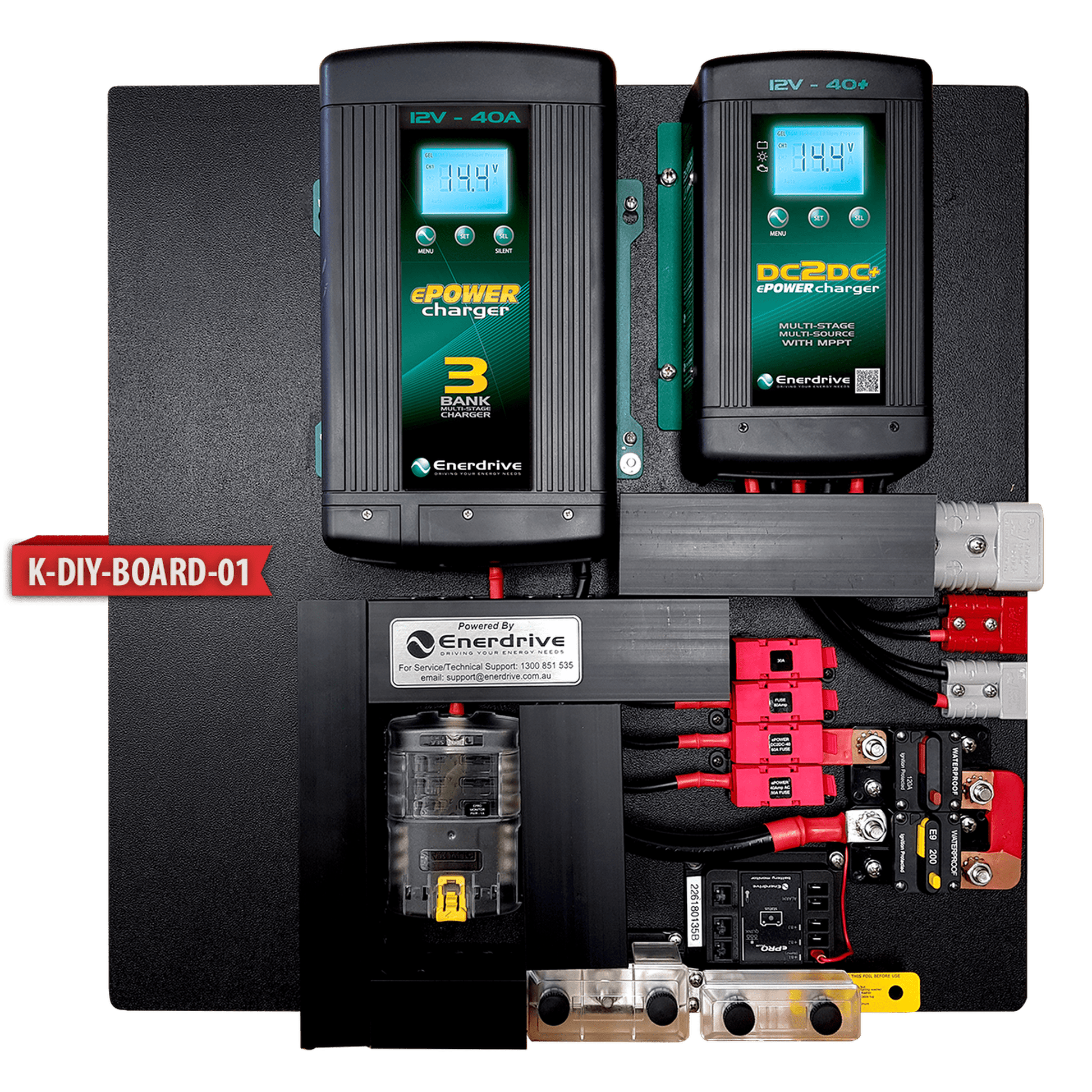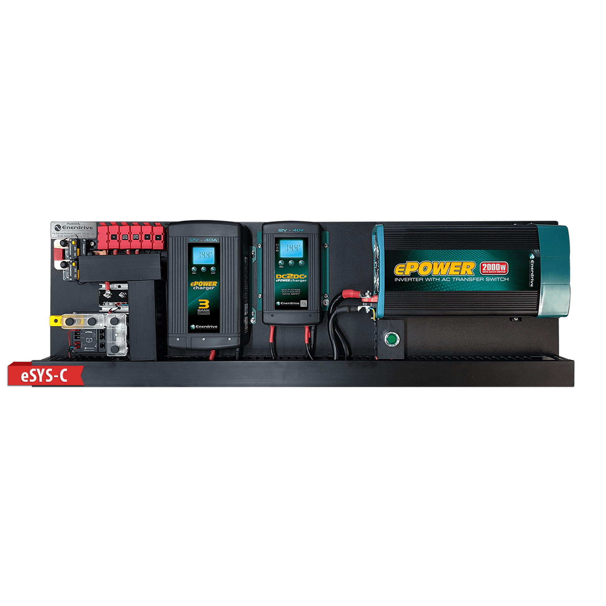 Enerdrive have created many different layouts and dimensional sizes to fit nearly every possible application. From small kits with AC & DC charging and battery monitoring up to kits with 2000w inverters and individual charge/load monitoring.