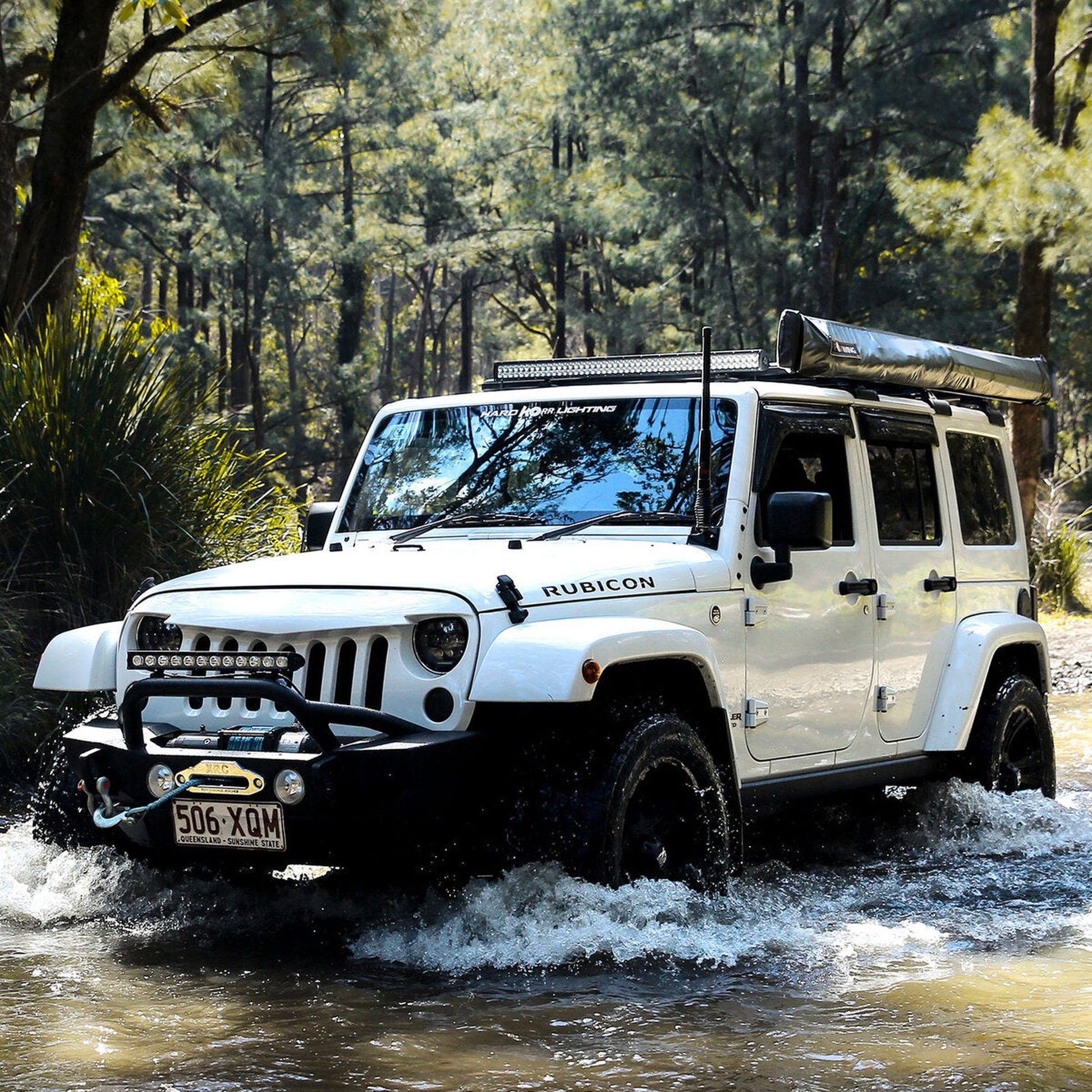 This HardKorr light bar includes a heavy-duty wiring harness, designed to handle the high current draw. Please note that this wiring harness is not ADR compliant and is designed for off-road use only, as it does not piggyback off the high-beam circuit.