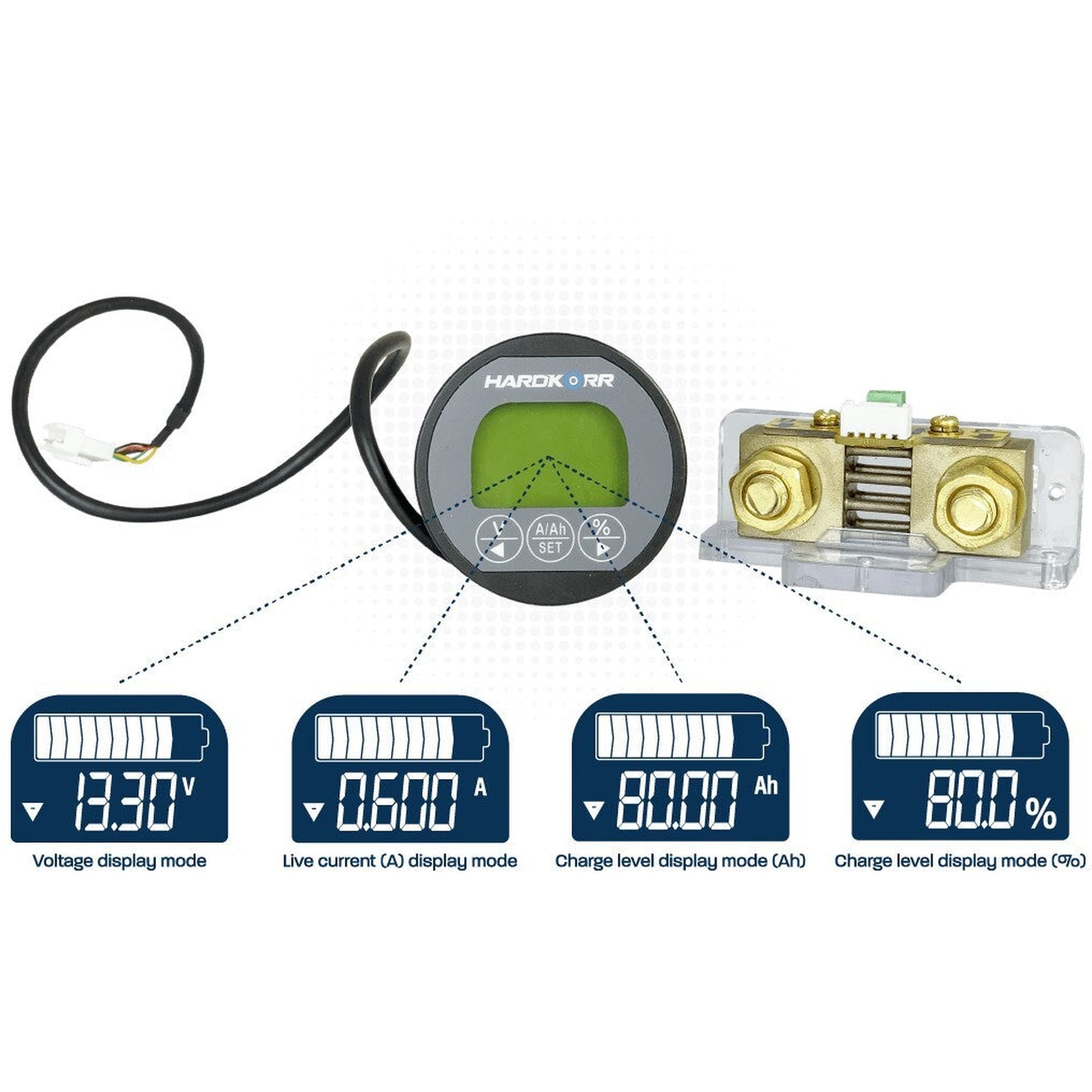 Accurately monitor the condition of your batteries.This remote battery capacity monitor, also known as a coulometer, uses a 500A shunt (350A continuous) to return highly accurate readings of battery voltage, live current draw (A) and charge level (Ah and %). It includes a memory function, and is suitable for all common battery types including AGM, wet, gel, calcium and lithium.This remote battery capacity monitor, also known as a coulometer, uses a 500A shunt (350A continuous) to return highly accurate readings of battery voltage, live current draw (A) and charge level (Ah and %). It includes a memory function, and is suitable for all common battery types including AGM, wet, gel, calcium and lithium.