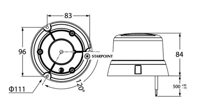 Low Voltage Mini Class 1 LED Beacon, 10-30V Amber LED Beacon with Flange Mount
