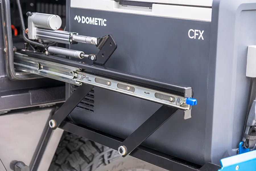 The MSA 4X4 DS50 Power Slide™ takes the original Drop Slide™ to the next level by eliminating all physical effort to raise and lower your fridge to an accessible height. Perfect for chest-style fridges and freezers, the DS50 makes storing and accessing chilled food and drinks while traveling Australia's rugged roads easier than ever.
