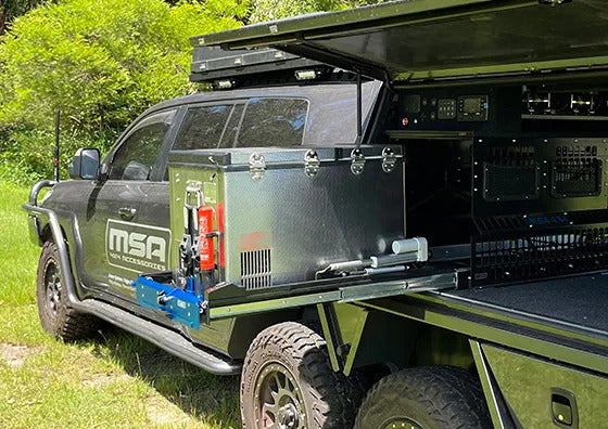 The MSA 4x4 DS50 Power Slide™ takes the original Drop Slide™ to the next level by eliminating all physical effort required to raise and lower your fridge to an accessible height. Designed to handle chest-style fridges and freezers, it offers the most convenient solution for storing refrigerated goods while traveling Australia's rough roads. Accessing chilled food and drinks has never been easier.