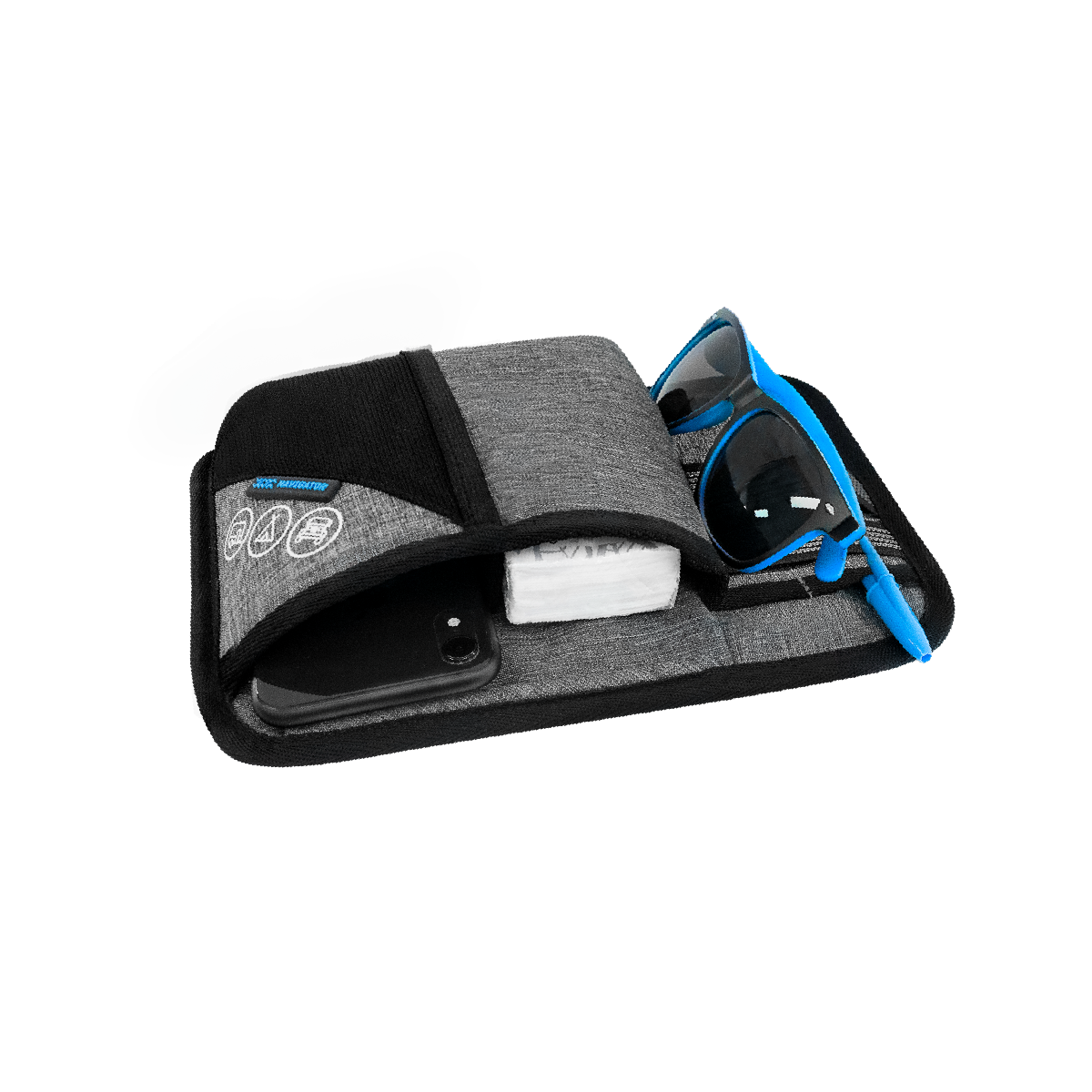 With genuine velcro backing to adhere to the dashboard, the Dashboard Buddy is your solution for storing tissues, mobile, pens, sunglasses, receipts and more!