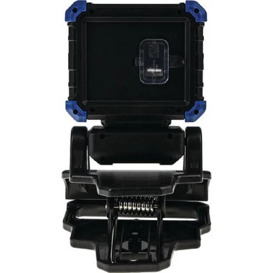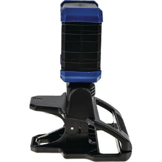Rechargeable Adjustable Flood Light with Clamp Adjustable 450 lumen rechargeable LED flood light with super-strong base clamp with magnet for versatile hands-free illumination. The head rotates 270° sideways, as well as pivoting up and down, for complete control over your beam angle. This versatile all-rounder also doubles as a power bank to charge your devices, thanks to the rechargeable Lithium battery.