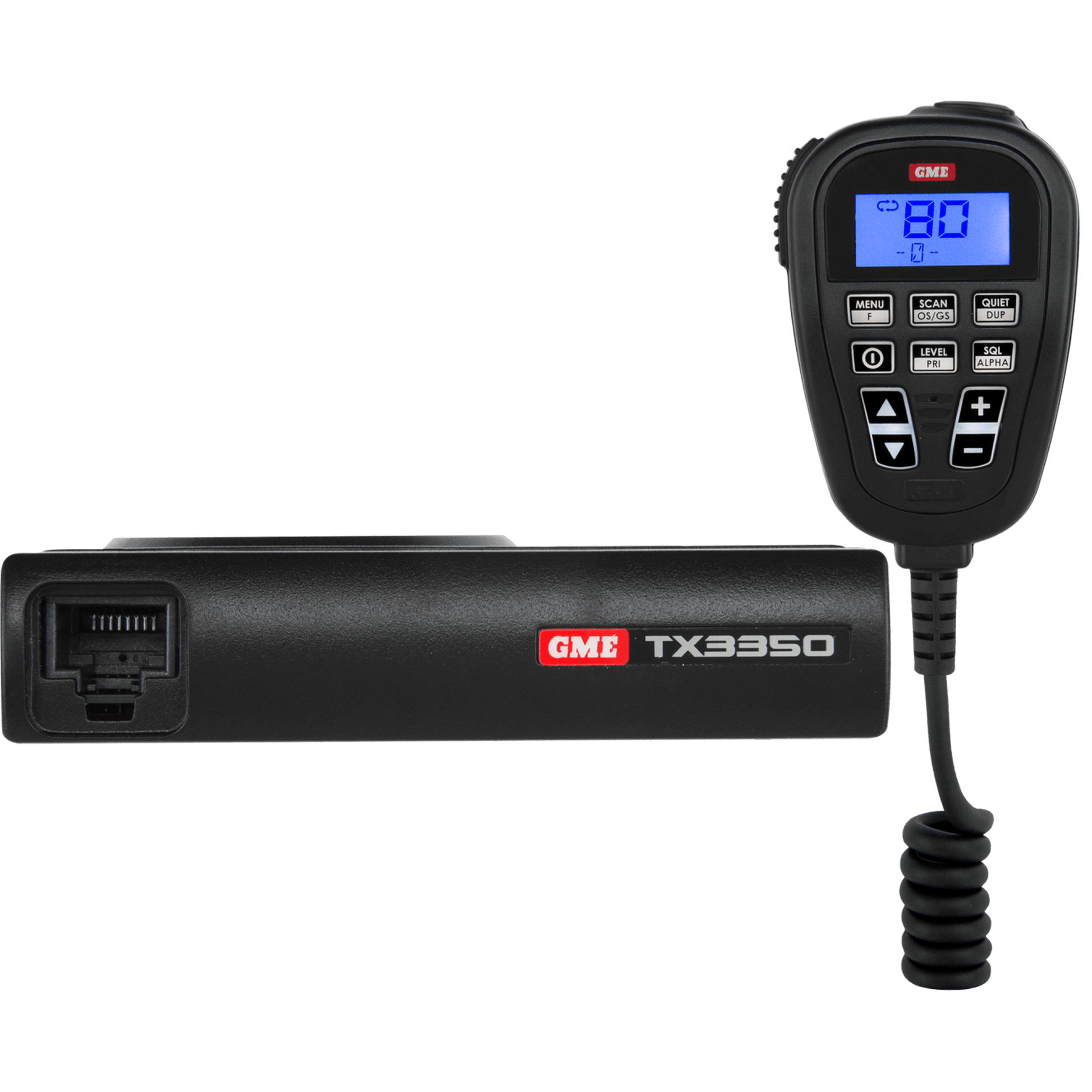 The TX3350 is a feature-packed Super Compact UHF CB radio including a SoundPath™ LCD speaker microphone.