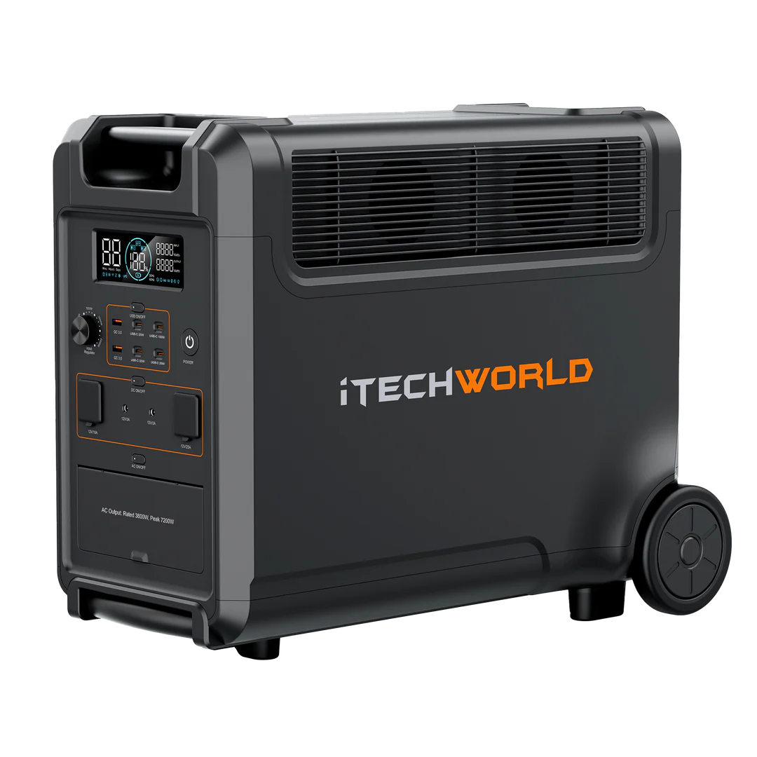 The Ultimate Solar Generator Kit - PS3600 Power Station delivers a staggering 3600W (7200W peak) of pure sine wave AC output, ensuring reliable power for both everyday and emergency situations. Its robust 240v 15A output can handle a wide range of heavy-duty appliances, making it an ideal choice for home backup and off-grid adventures.