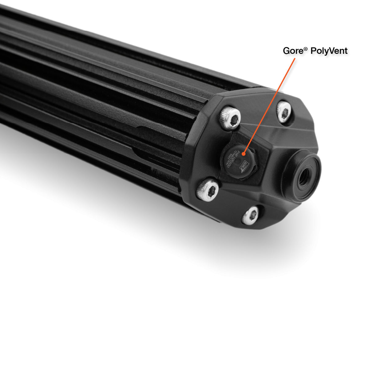 Our sleek, single row LED bars incorporate a screw-less bezel design for superior sealing against the elements, fitted with Gore® PolyVents for ultimate housing ventilation.